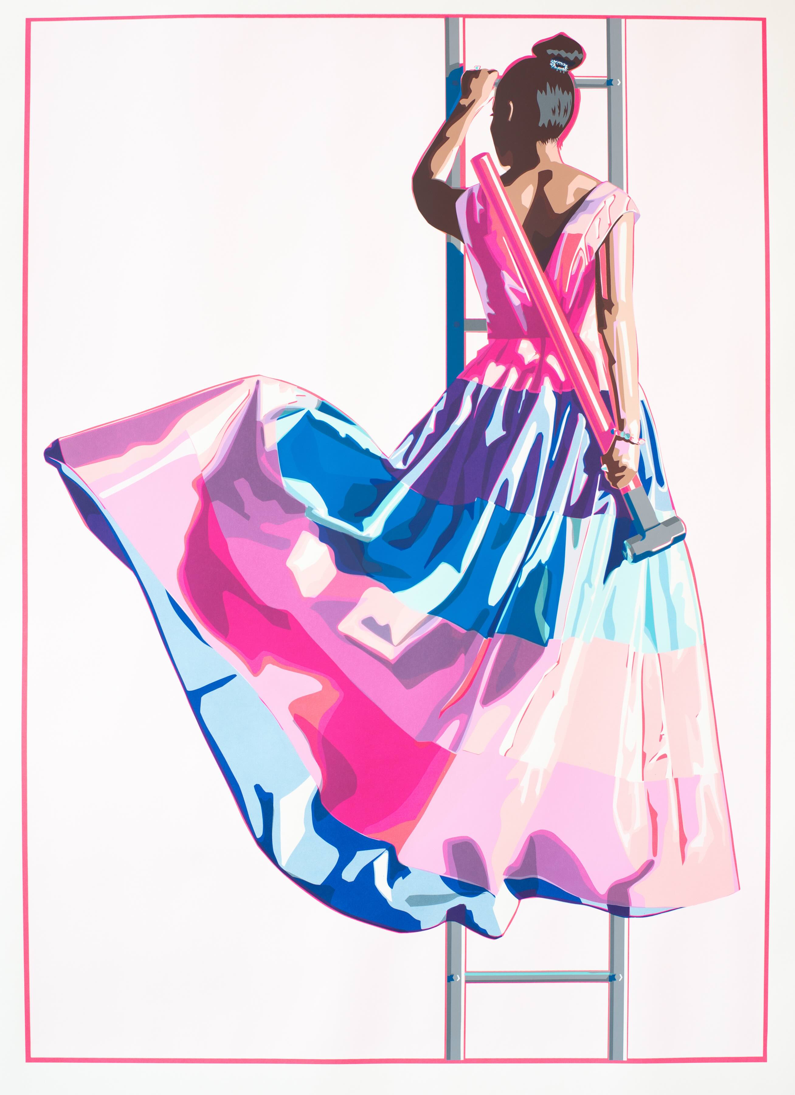 We are thrilled to announce our new Rotating Exhibition this week. We have partnered with Albertz Benda gallery to present Butterfly Effect, an exhibition of recent works by Kelly Reemtsen. Known for vivid depictions of impeccably dressed women wielding power tools, Reemtsen uses saturated color and densely worked surfaces to consider power, agency, and expectation in contemporary femininity.