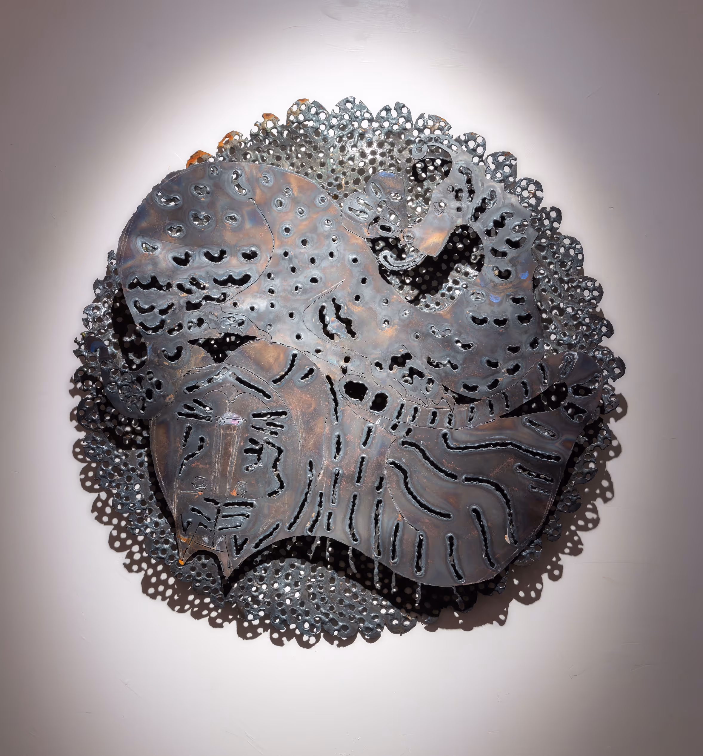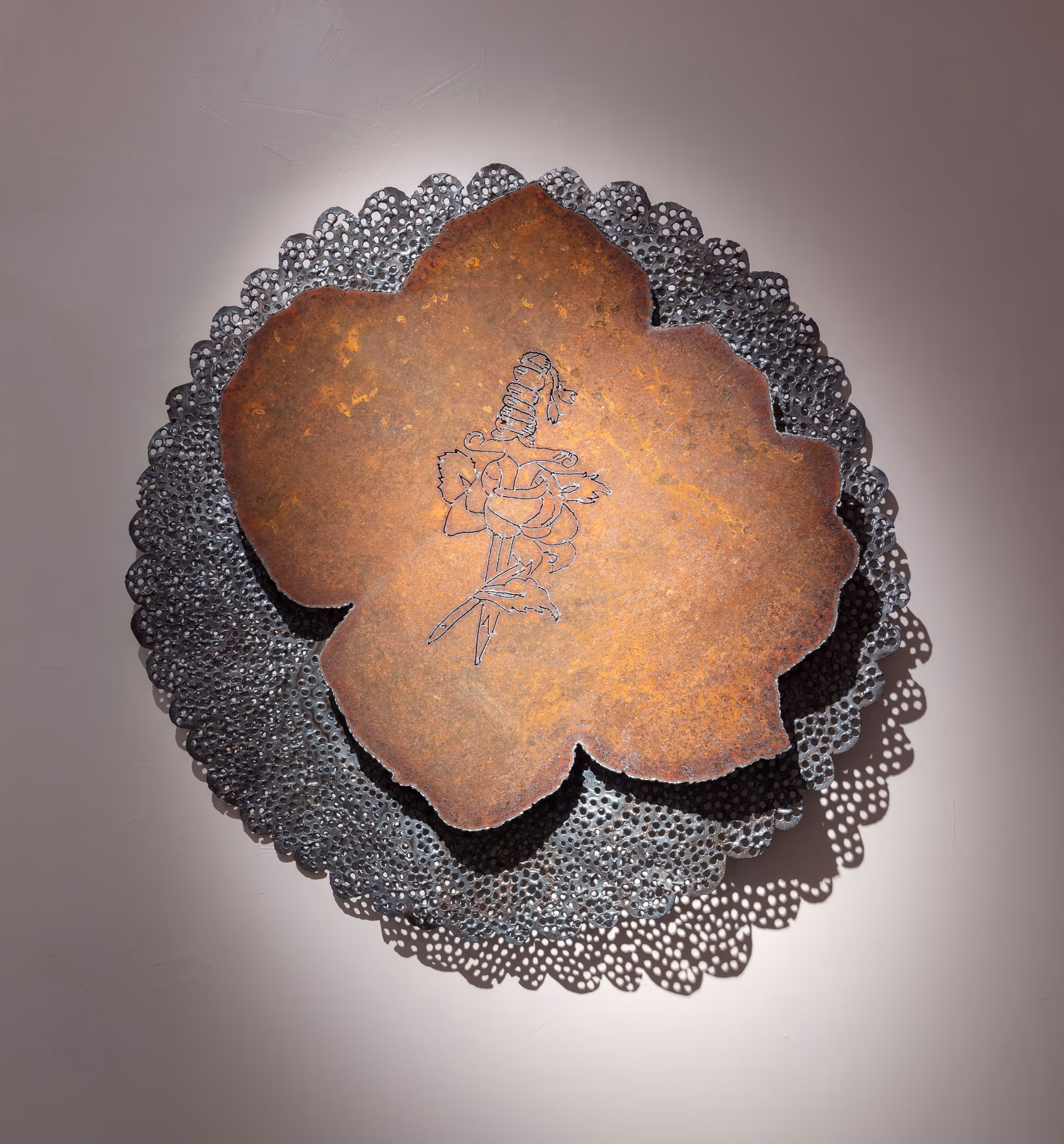 Over the course of her career, Dallas-based artist Kaleta Doolin has developed an enigmatic style to facilitate her intersectional social critique. Casting traditionally domestic items in steel and iron, her sculptural work problematizes cultural equations of femininity with delicacy. Rusting doilies and patinaed florals carry on the legacies of their referents, putting Doolin in dialogue with artists like Betye Saar, Méret Oppenheim and Louise Bourgeois.