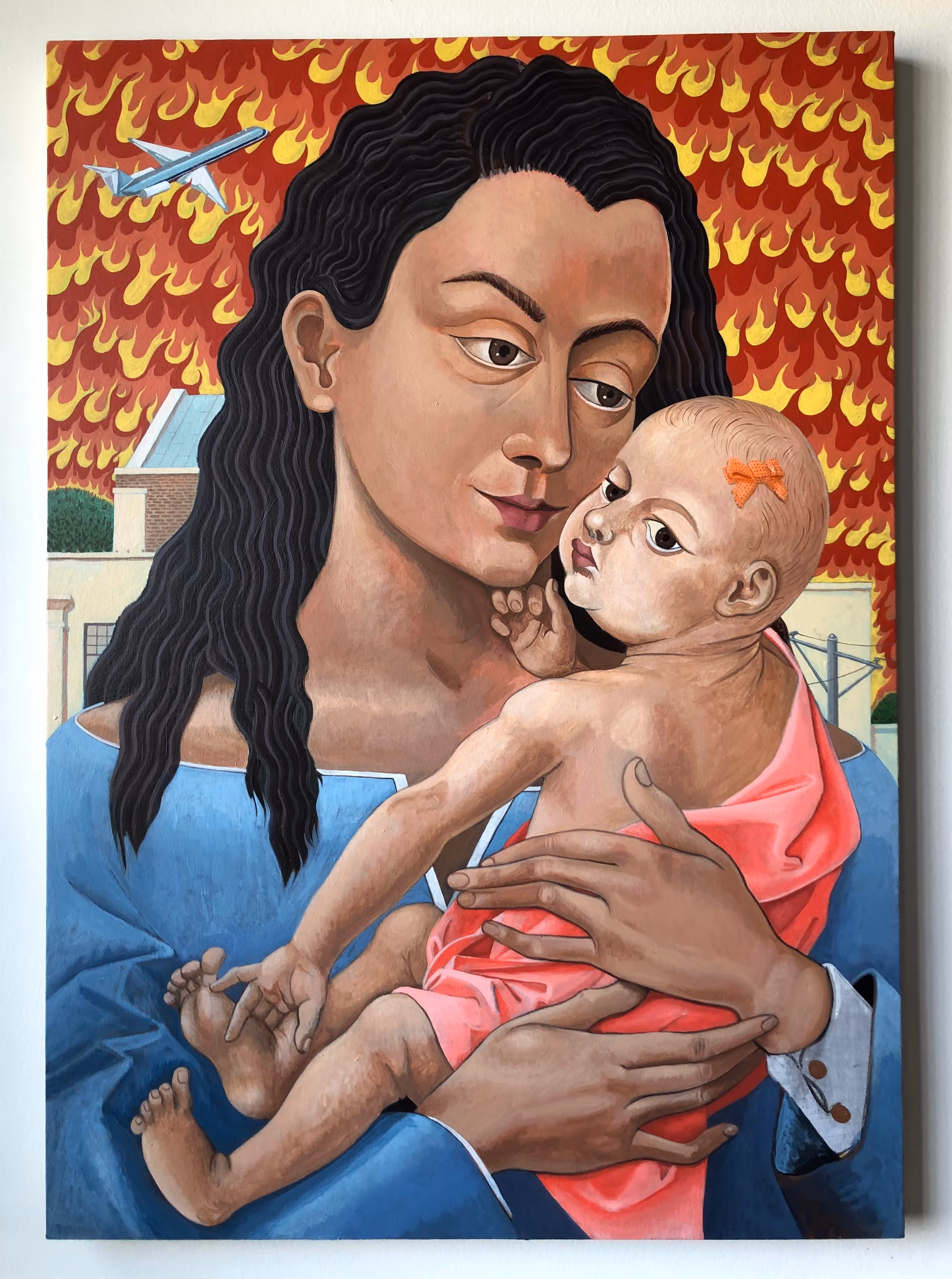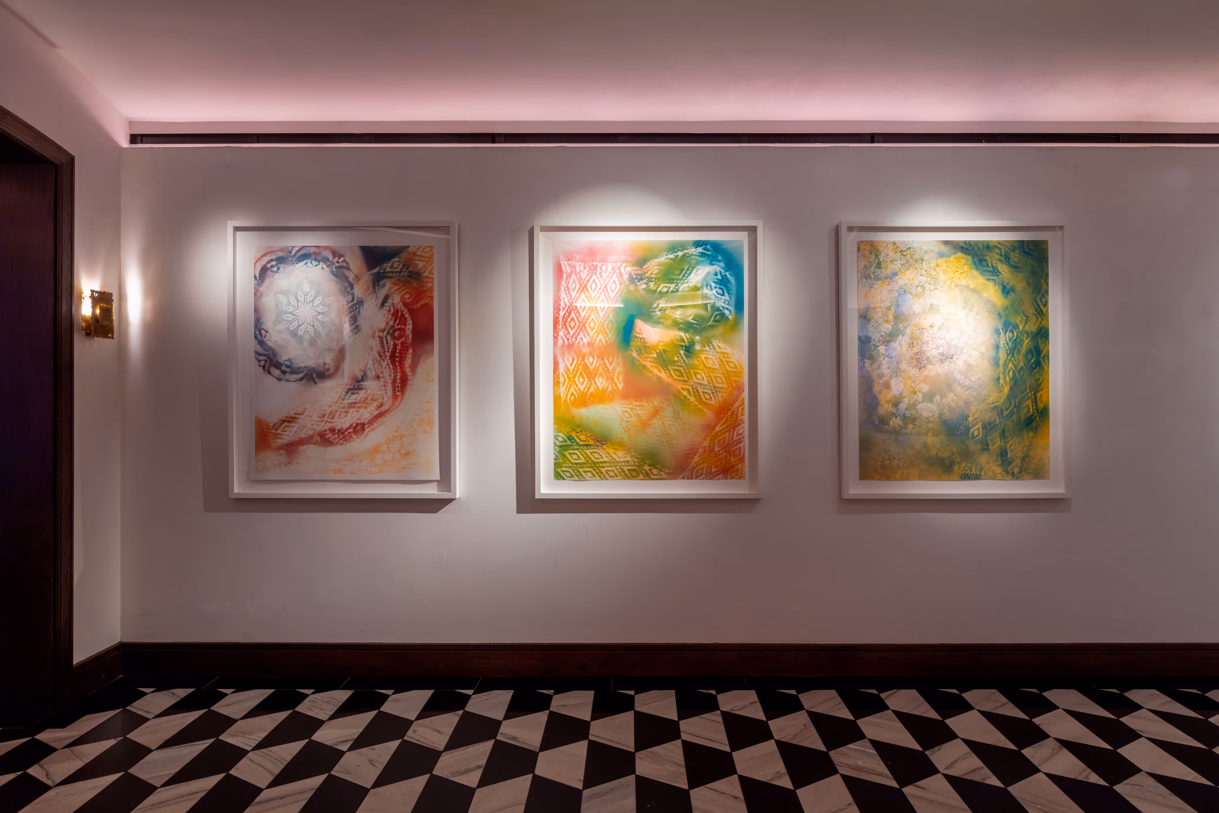 In this subjective world, a sense of control is relinquished and an unknown narrative unfolds, Revealing traces of her creative process, her new series offers the viewer a peek into the capsule of her mind, in which movement towards another story is shown as a progression, a freeze frame of three moments in time — the idea of suspension. The works unravel and open out from the wall and away from the notion of a solid frame. The plane window turns into a more abstract representation of change and color.