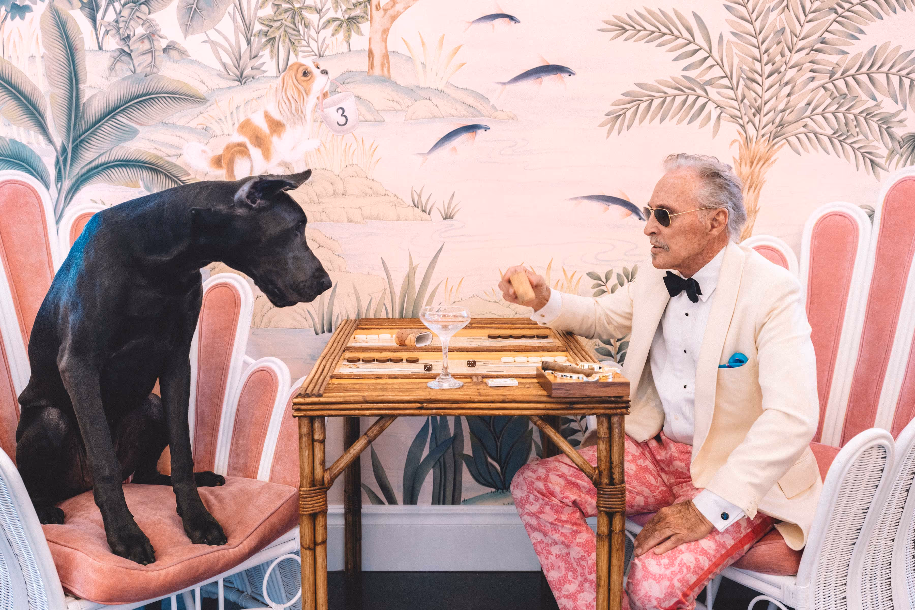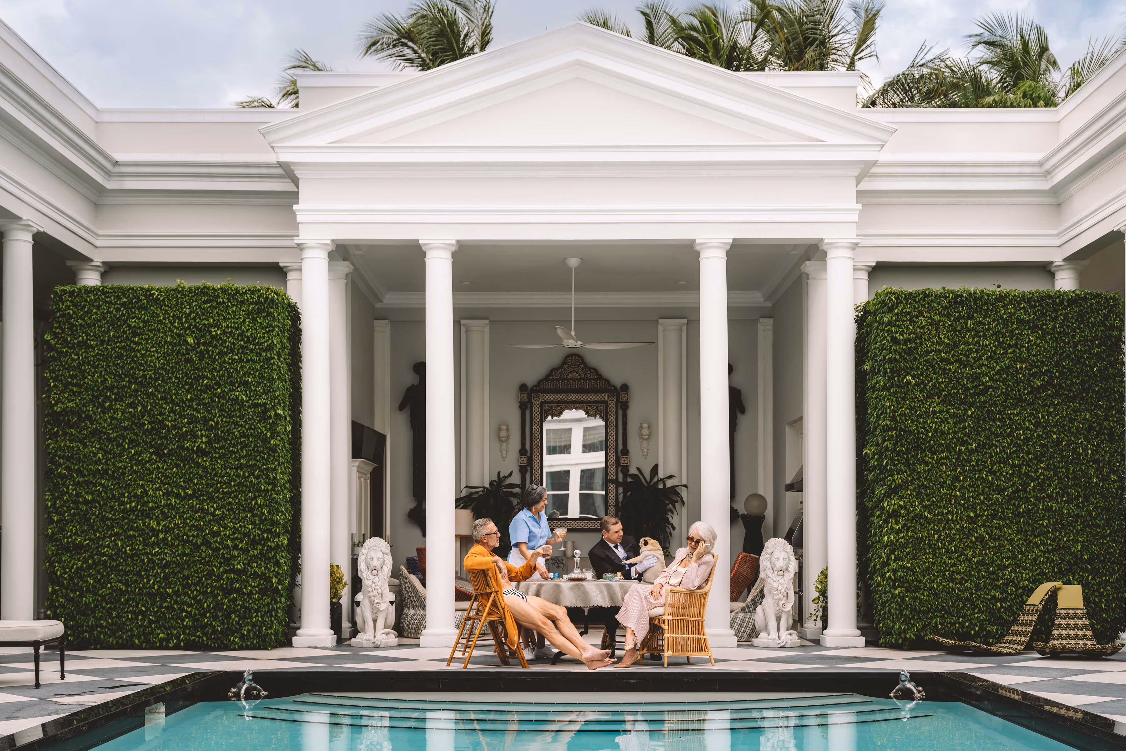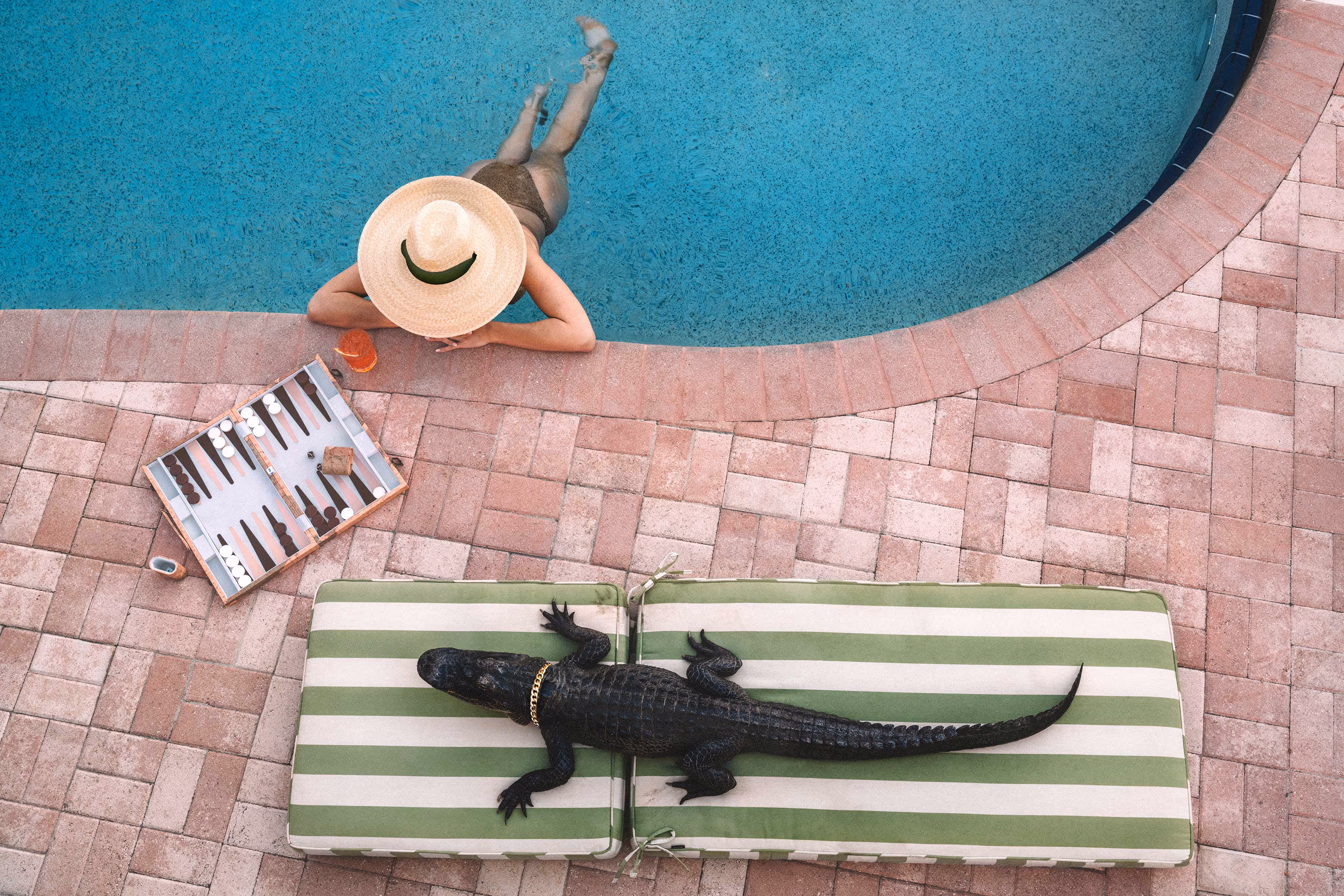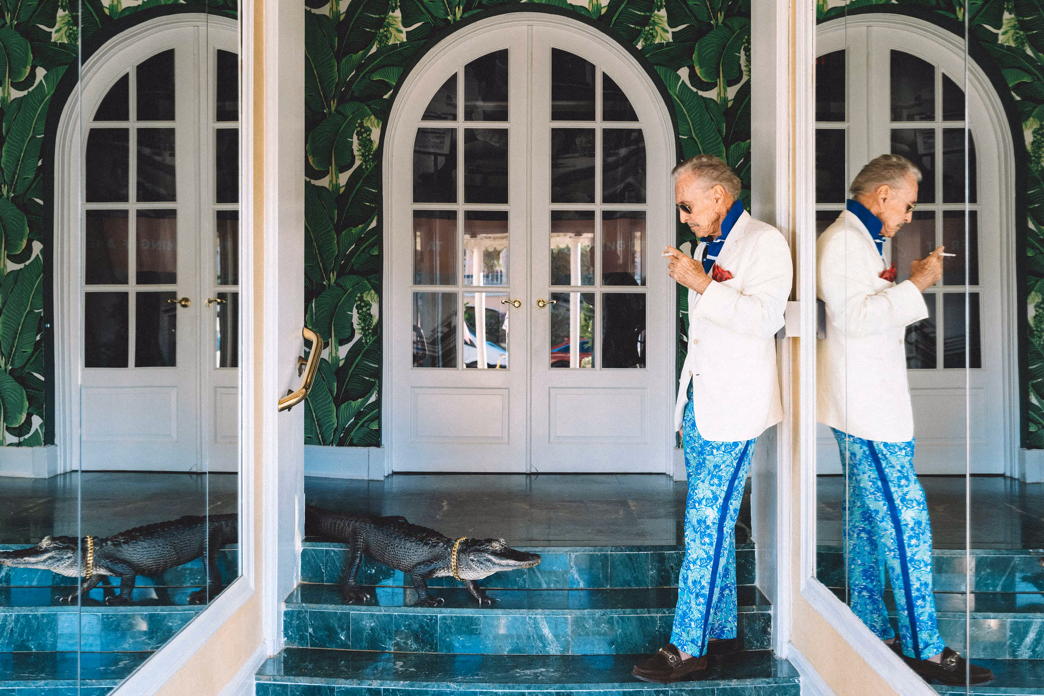 Nick Mele presents his first collection of limited edition fine art prints. The photo series, titled PLEASE SIGN IN ALL GUESTS, is a flamboyant ode to classic Palm Beach. Primarily a lifestyle, fashion and interior design photographer, Mele is best known for his whimsical take on luxury and elegance. This new series of photographs marks a shift to a new style of decadent storytelling. Mele's irreverent take on timeless, all-American glamour is immediately recognizable, but in this series, he moves past the magazine pages, spinning tales of surreal characters in dreamlike domestic spaces. Documenting a lifestyle at once familiar yet fantastic, Mele's imagery feels like a fanciful peek into the rarefied spaces of Palm Beach society. As viewers, we are offered a glimpse into improbably beautiful spaces that are normally inaccessible to the public eye.