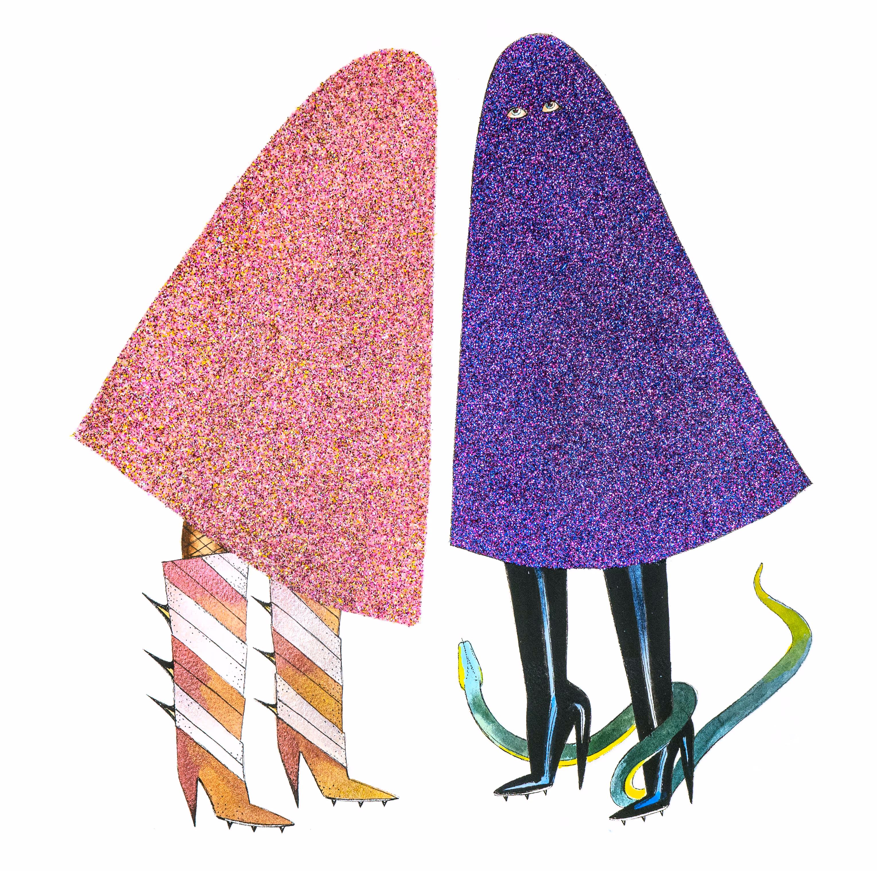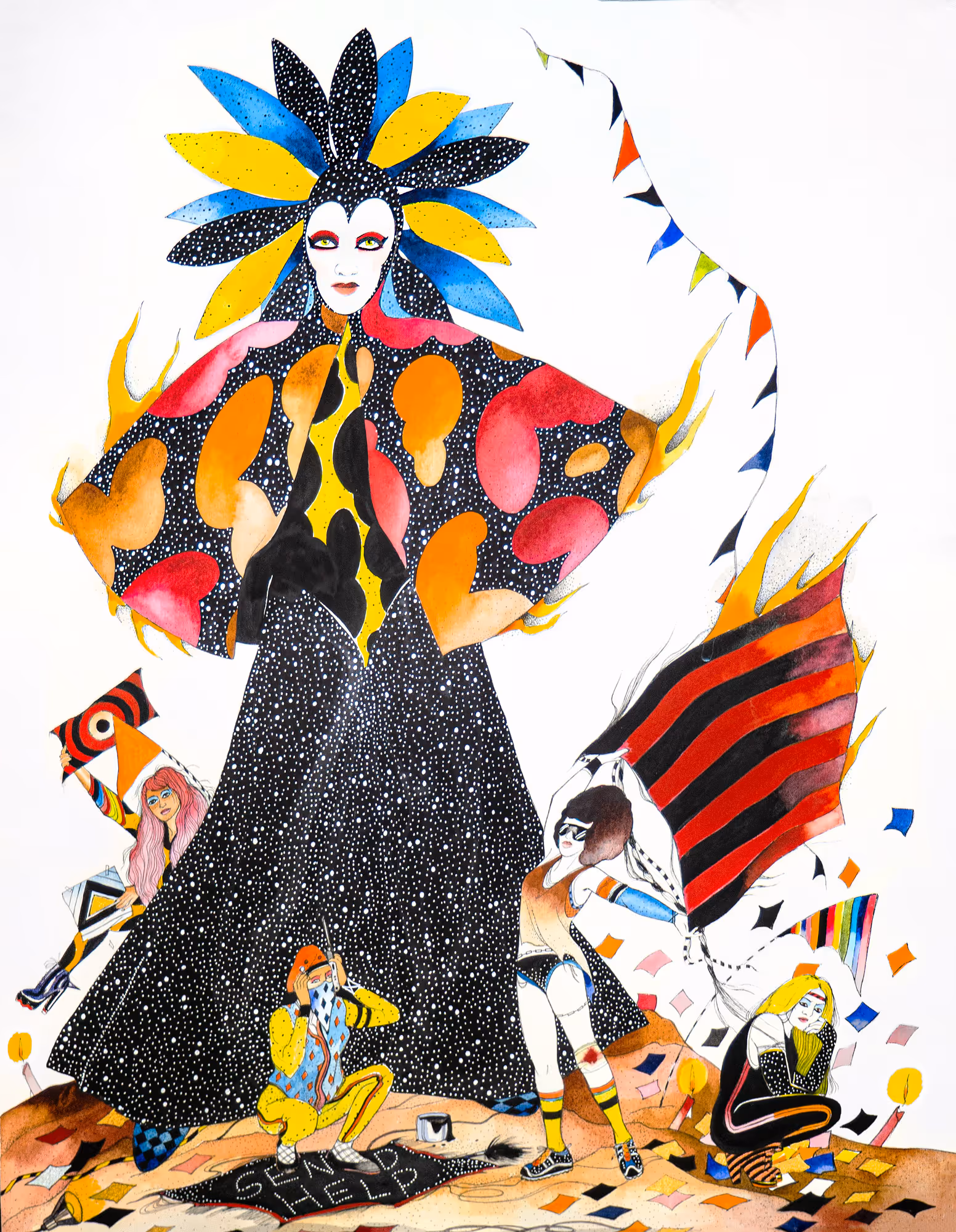 Jen Ray (b. 1970, American) has spent the last several years living and working in Berlin, where she is represented by Wentrup gallery. Rayʼs work has been exhibited widely throughout Germany, including shows at Kunstmuseum Wolfsburg, Kunstverein Kassel, and KW Institute for Contemporary Art, Berlin. Jen Rays drawings are militantly detailed filigrees of judicious line and color; the artist's hand enunciates sparring Amazonian women, who inhabit decaying, semi-surrealist and strangely beautiful wastelands. In addition to her works on paper, Ray orchestrates lavish and provocative performances in which the female protagonists of her drawings come to life.