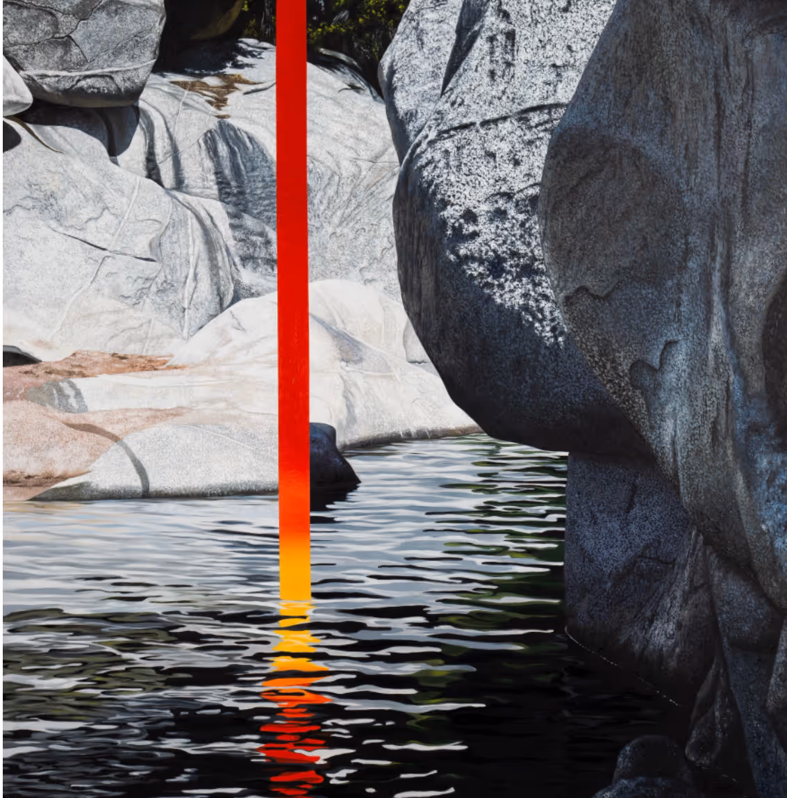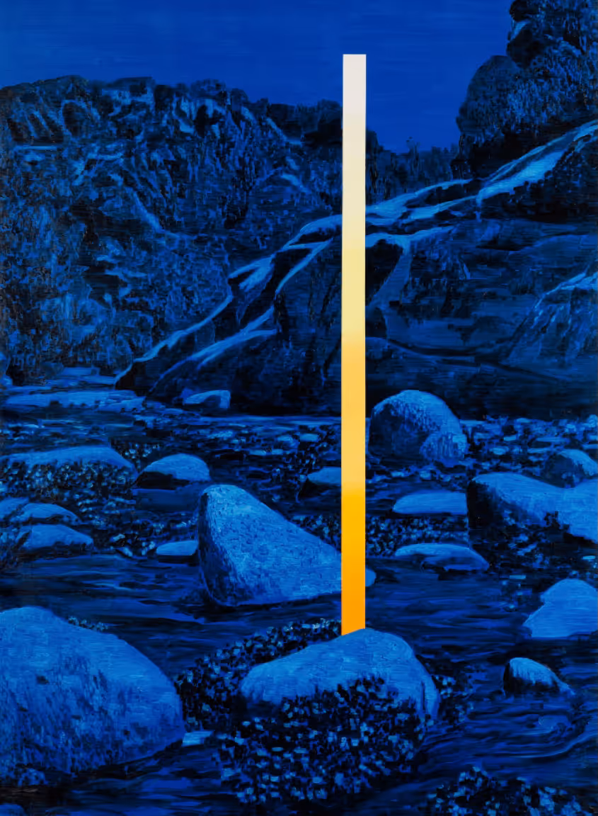Acosta explores the notion that, at a subatomic level, humans are made of the same elements as everything around us. As such, the artist finds himself in the natural elements that he portrays and offers us an opportunity to do the same. These works propose an integration with nature, not a separation from it, and in so doing erases the tension between culture and nature. The places he depicts in his works are outside of any specific physical space and instead formed by an echo or a dream, further uniting us and the landscape. The Right Place is no place and every place, encompassing a common essence that is, at its core, simply light.