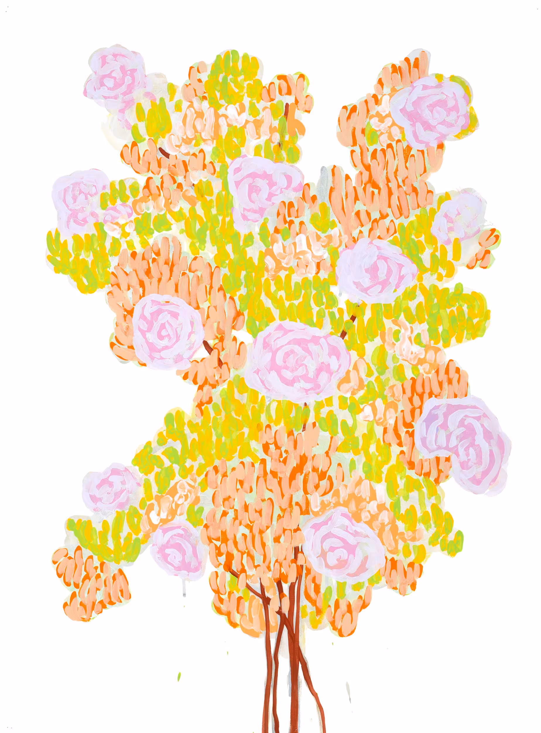 Andy Woll is a Los-Angeles based artist known for spirited, gestural paintings featuring thick applications of oil paint. Across his body of work he has revisited straightforward subjects – including Los Angeles’ Mt. Wilson, horses, and standing chairs – which through his repeated depictions become contexts for evolving explorations of color and form. Made alongside works of pure abstraction, Woll’s paintings push at the limit of representation, masterfully reigning his seemingly spontaneous brushwork into figuration.