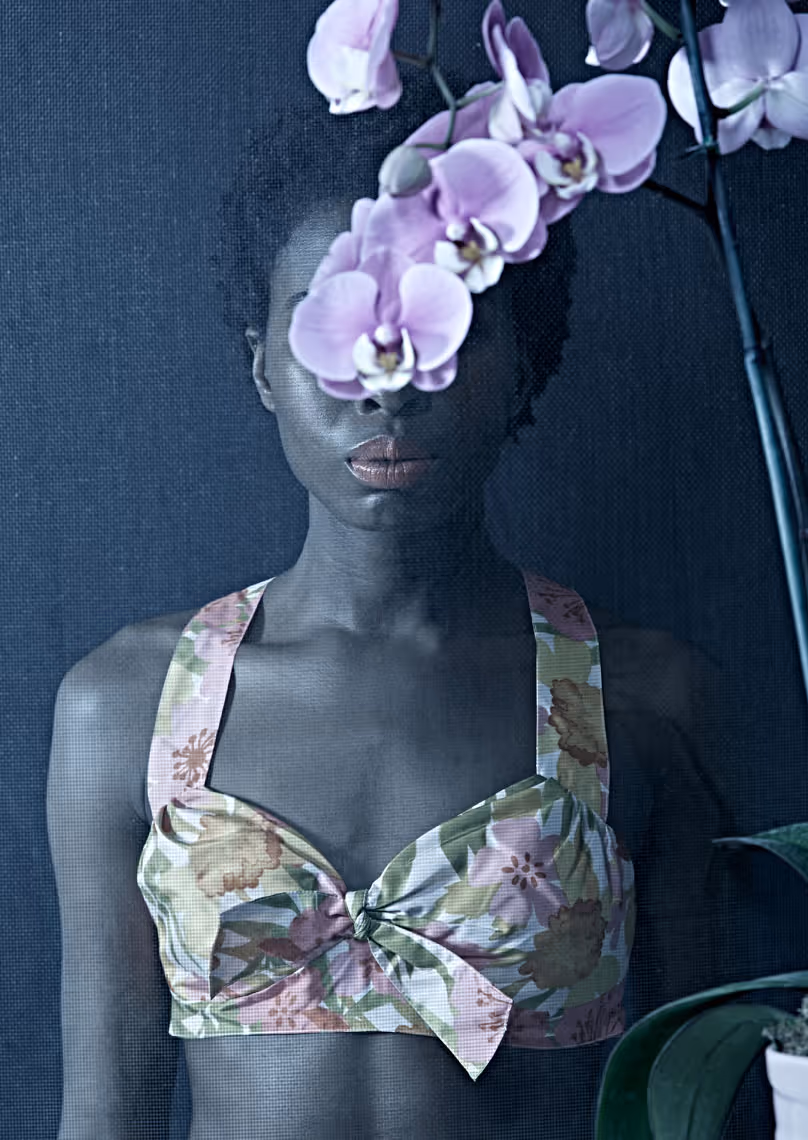 In this series of large-scale archival photographs, some of Palm Beach's most storied locales are brought to life through Mele's wit and theatricality. Mele's dramatic use of bold color and composition highlight the Colony Hotel's glamorous and luxurious interiors, while Duck's Nest, the historic home of founding Palm Beach homesteaders, becomes the elegant backdrop for serene scenes of domestic life. Through these backdrops and more, we are momentarily free to daydream of another world, in cotton-candy pinks and sky blues, that exists just behind the wrought iron gates.