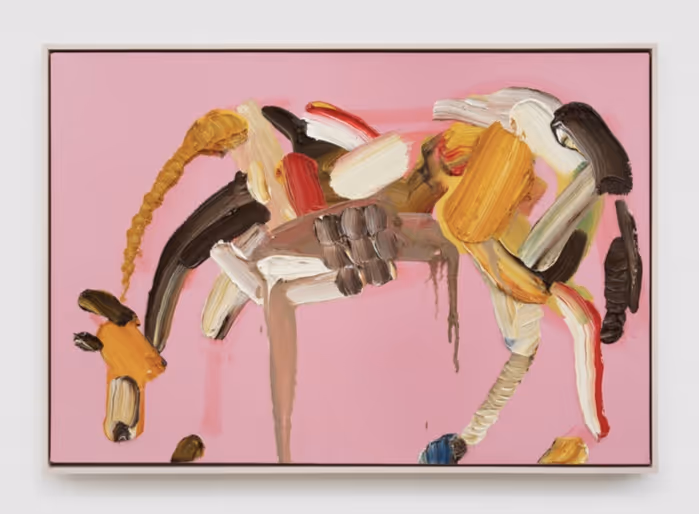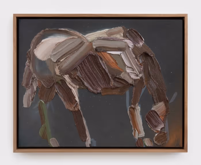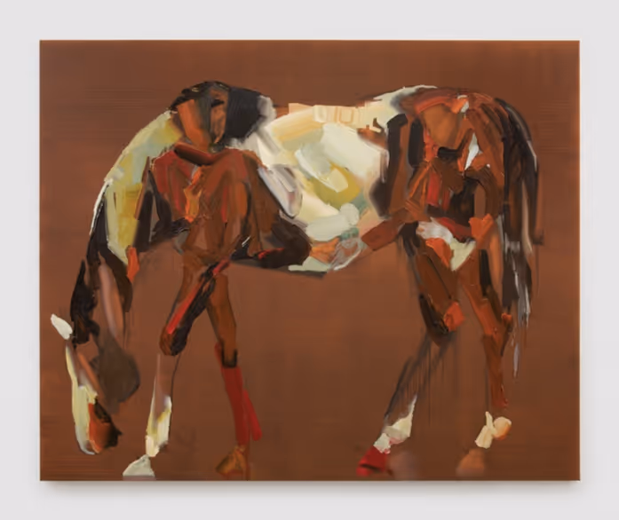 Recent iterations of Woll’s series have found the artist incorporating passages from historic works of art hidden within his paintings of mountains and horses, layering both illusions and allusions within deceptively simple compositions. With playful elegance, these works collapse the lineage of oil painting within singular images, hearkening back to the Old Masters while employing formal strategies out of Modernism. In conversation with the heavy viscosity of Woll’s brushstrokes, which add inches of depth to the painting’s surface, the works become testaments to the history of oil paint not only as a tool of representation but also as a material itself. In his ongoing series we can find the artist delighting in the medium of paint, uncovering new and revelatory possibilities through the act of repetition.