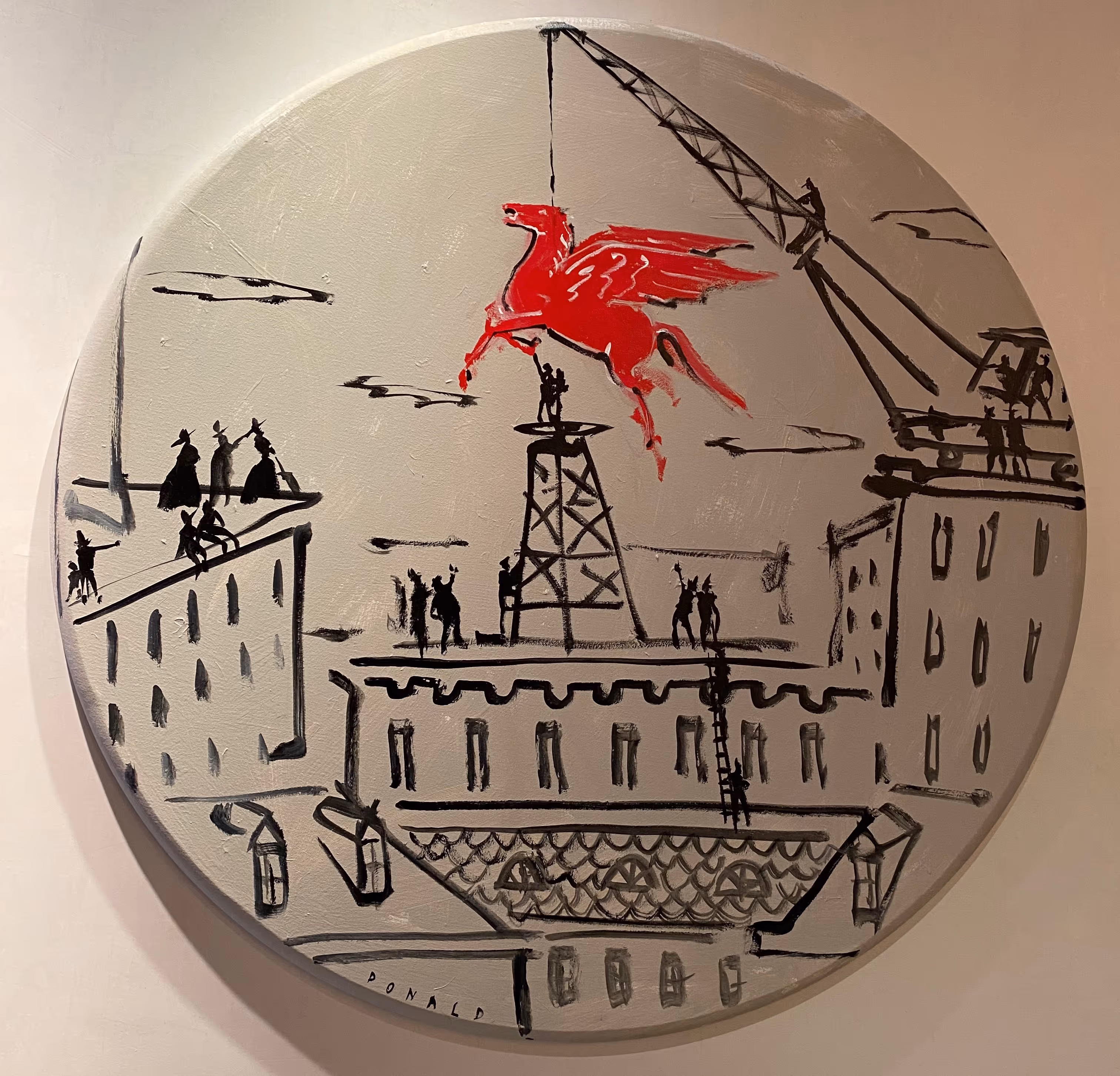 We were delighted to have Donald Robertson’s tongue-in-cheek, humorous art grace the walls and halls of Park House for his first show in Dallas. Our collaboration with the noted pop artist, prolific Instagram star and illustrator, enlivened the walls as you entered Park House. Donald recently moved his family to Highland Park from Southern California. Within a few short months, he has entrenched himself in the culture and subtleties of Texas and Dallas. Donald’s show featured various elements including his works on canvas, illustrations directly on the walls and large-scale sculptures. And for this show only, we created an “Instagram Photo” opportunity! Be sure to follow Donald on Instagram at @drawbertson. PH hosted a programming event were Donald chatted with PH co-founder, Deborah Scott, about his inspirations behind the Park House show and the wide breadth of art works he creates out of anything from an old basketball, vintage canvases and oil drums. Donald’s works were also available for purchase right off the walls. A percentage of the sale of each piece benefited our soon to be launched Park House Foundation, PHoundation. More information to follow on this exciting charity endeavor.