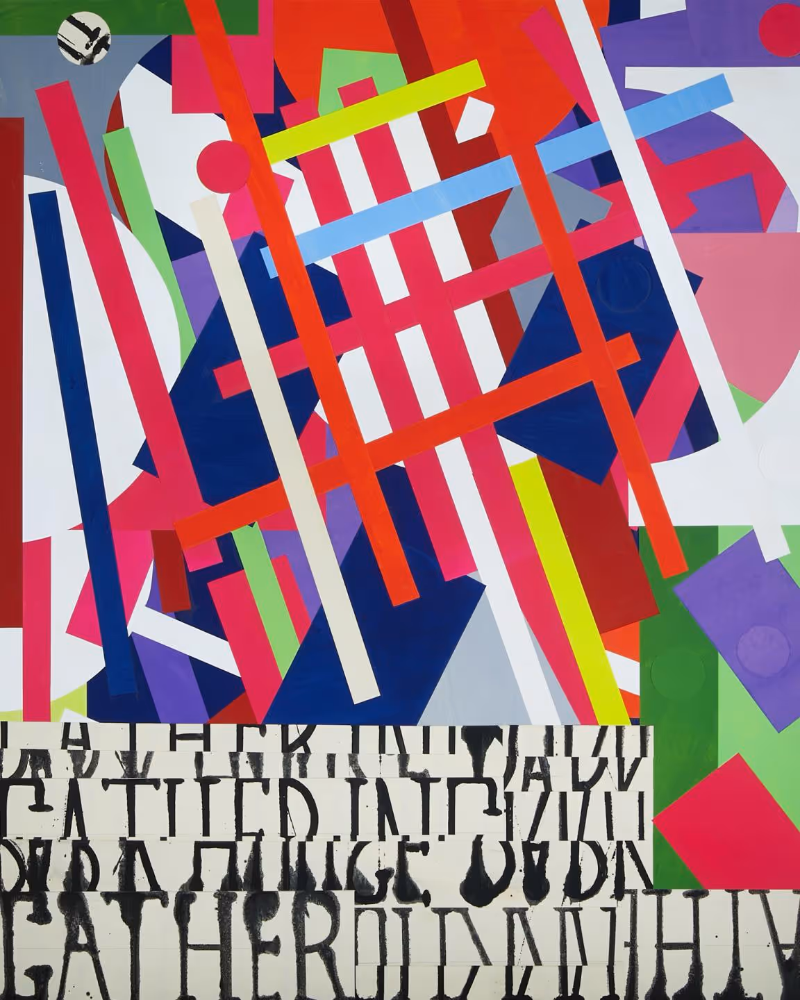 David Korty is a Los Angeles-based artist known for his mixed-media technique which combines elements of painting, frottage, and printmaking to create colorful geometric compositions. By employing simple methods and a specifically defined palette to create these elements, Korty is able to devote himself fully to the pained and precise structuring of each composition, which hearken in equal part to Russian Constructivism and Pop Art. Though at times representational elements appear in Korty's work, a formal logic dominates, pushing even discernible passages of text to the point of abstraction. Korty has shown extensively in Los Angeles, in solo exhibitions at Night Gallery, China Art Objects, Michael Kohn, and LAXART, at Derek Eller Gallery and Greene Naftali in New York, and at Sadie Coles HQ in London. His work is in the permanent collections of the Hammer Museum in Los Angeles, the Grunwald Center for Graphic Arts, Los Angeles, the Judith Rothschild Foundation, and the Rubell Collection.
